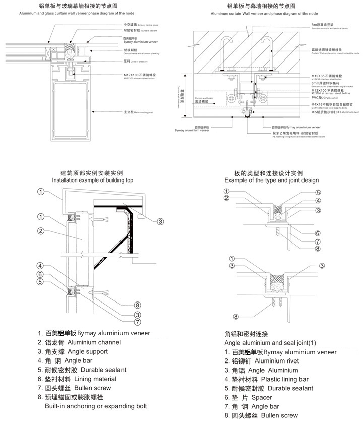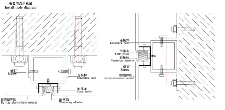 6、安装施工方便快捷。铝板在工厂成型,施工现场不需裁切,固定在骨架上即可。