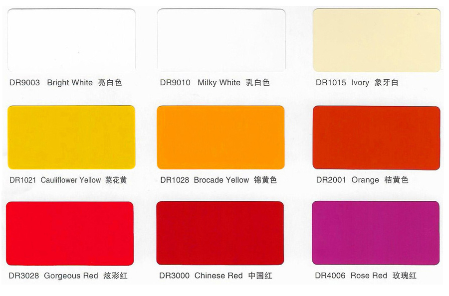 大中公司有常规一百多种颜色提供给客户挑选,客户也可以根据《国际标准色卡-老劳尔色卡 Old RAL Color Card》来挑选颜色。